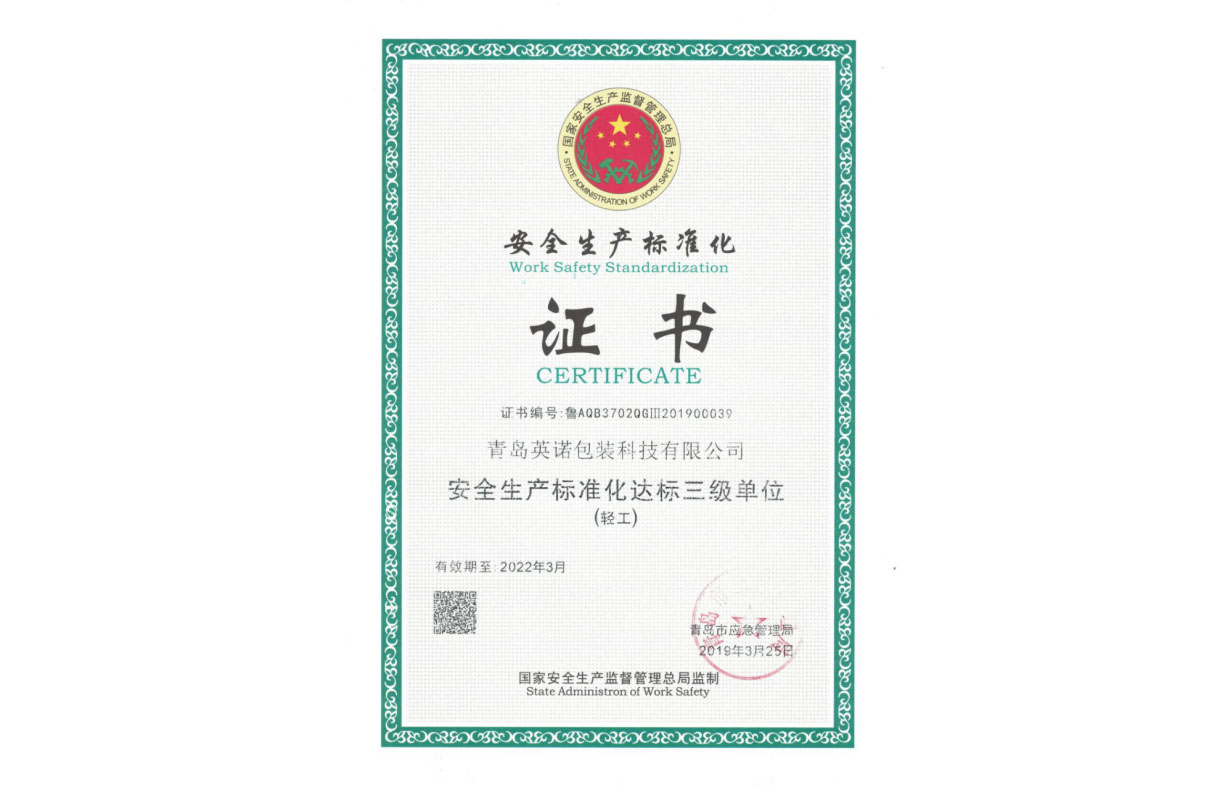 安全生產(chǎn)標(biāo)準(zhǔn)化證書